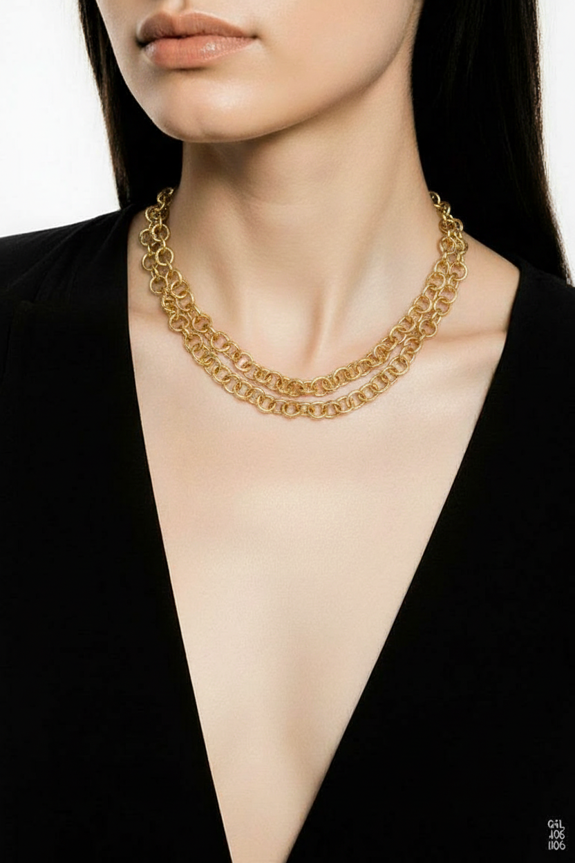 Collar Dorado De Eslabones Con Pieza Central Ovalado