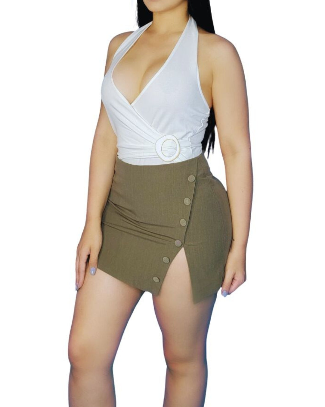Olivia — falda-pantalón de tiro alto con botones asimétricos